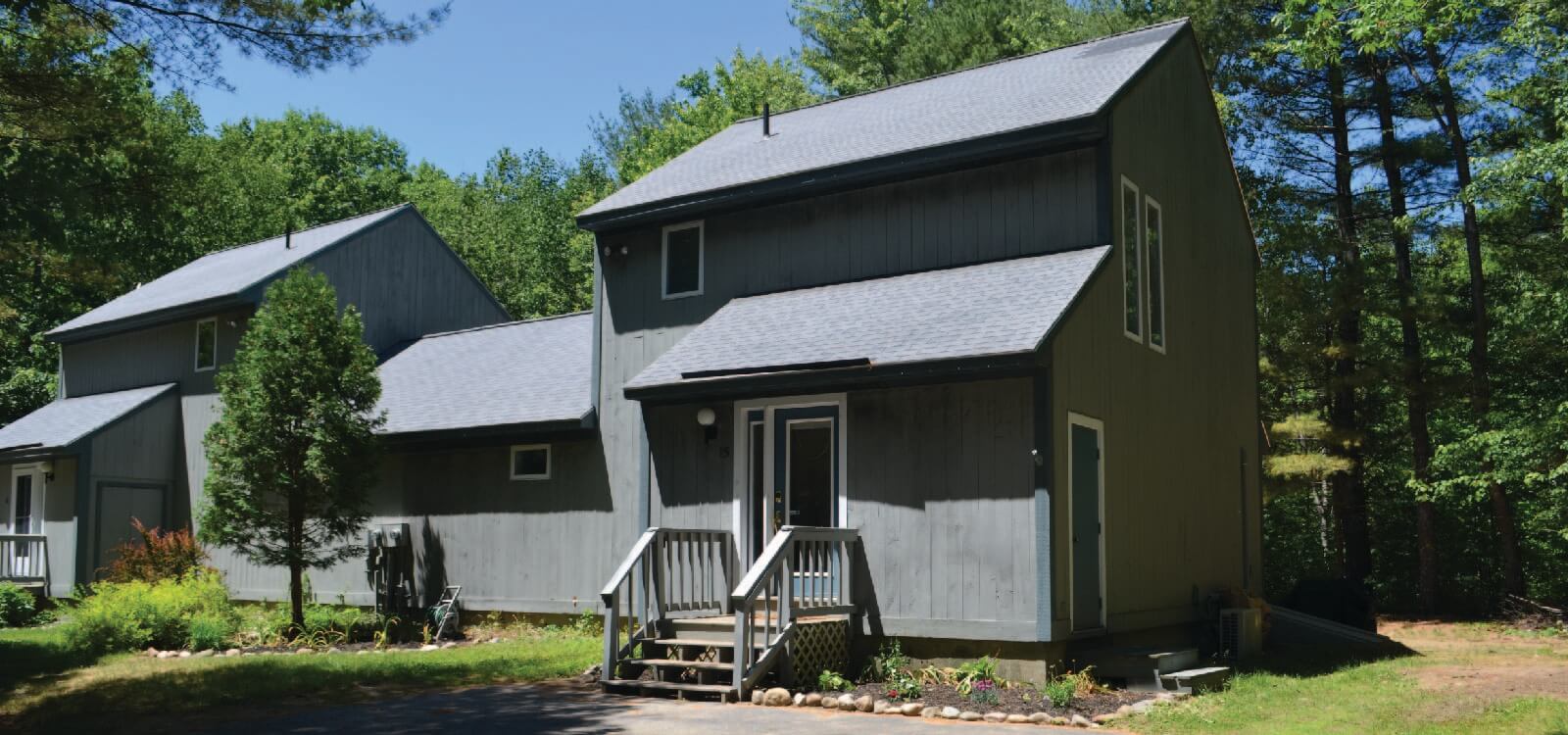 This property is a semi-detached home in a private community set back about a 1/2 mile from RT16/RT302 along the Saco River. The home has a private driveway, entrance, and yard as well as a private community pool just steps away.